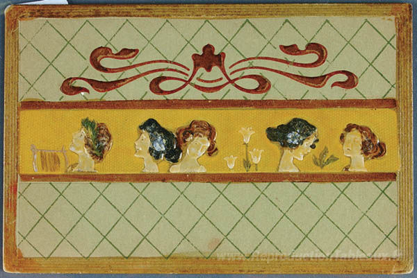 Nous vous proposons une reproduction artisanale sur toile du célèbre tableau 'Petites têtes grecques' de Raphael Kirchner, provenant du Musée de la Reproduction.