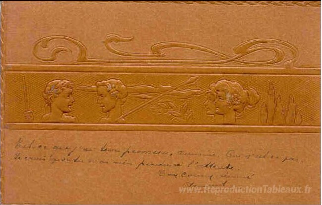 Nous vous proposons une reproduction artisanale sur toile du célèbre tableau 'Petites têtes grecques' de Raphael Kirchner, provenant du Musée de la Reproduction.