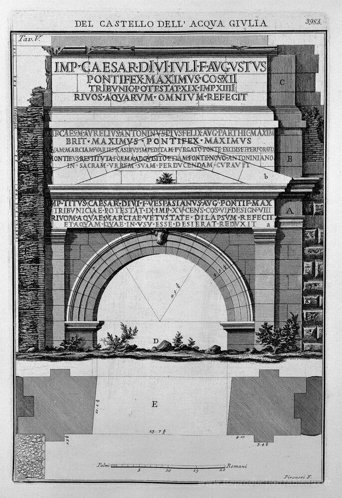 Nous vous proposons une reproduction artisanale sur toile du célèbre tableau 'Plan et élévation du monument des eaux et Julia Marcia Tepula Po' de Giovanni Battista Piranesi, provenant du Musée de la Reproduction.