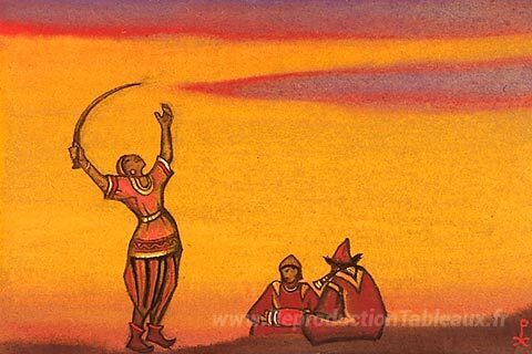 Nous vous proposons une reproduction artisanale sur toile du célèbre tableau 'Polovets avec Smititar' de Nicholas Roerich, provenant du Musée de la Reproduction.