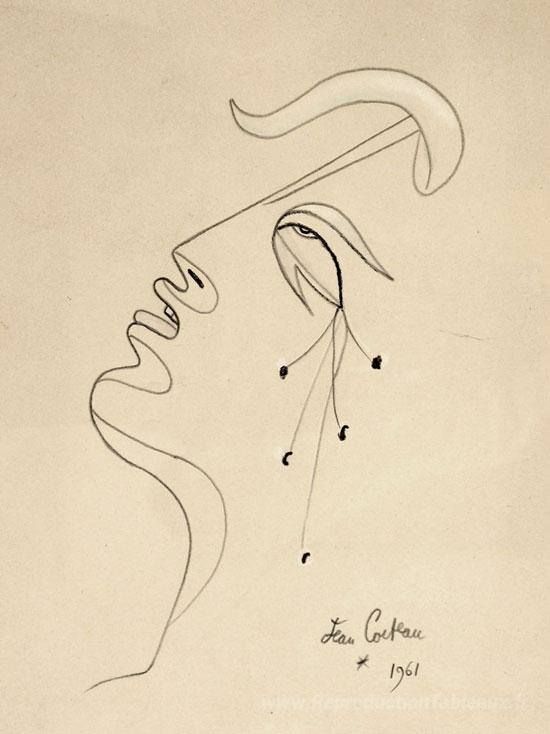 Nous vous proposons une reproduction artisanale sur toile du célèbre tableau 'Profil' de Jean Cocteau, provenant du Musée de la Reproduction.