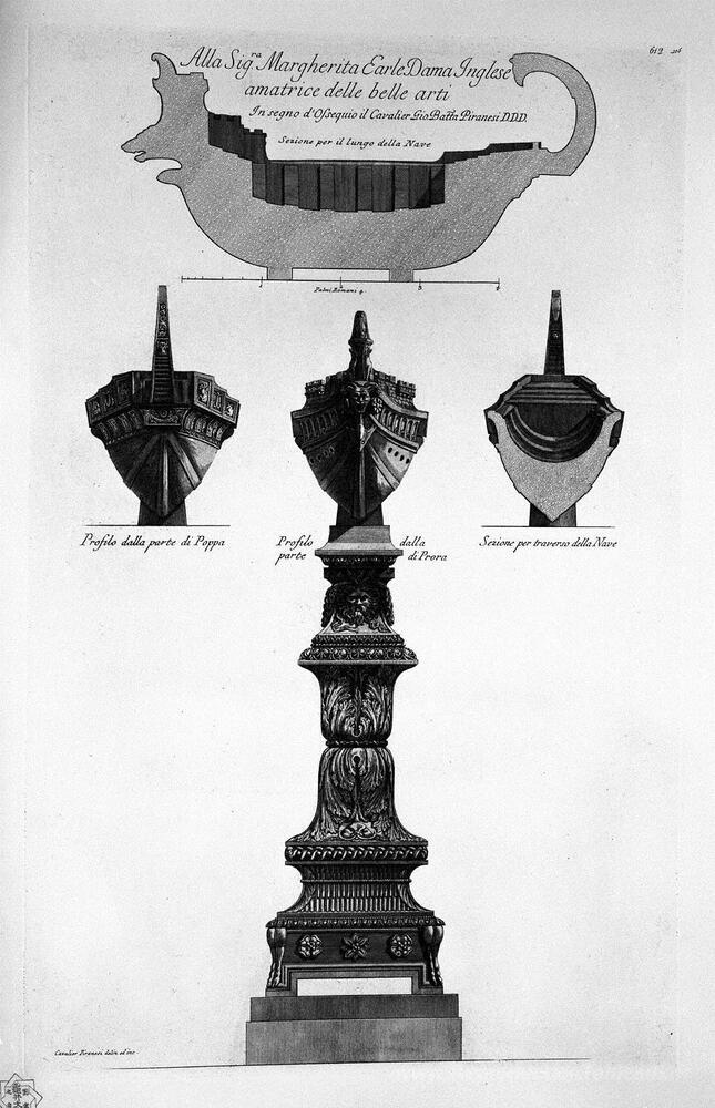 Nous vous proposons une reproduction artisanale sur toile du célèbre tableau 'Profils et sections du navire ci-dessus' de Giovanni Battista Piranesi, provenant du Musée de la Reproduction.