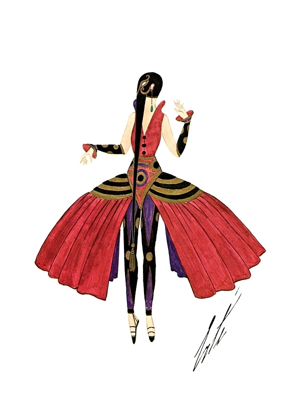 Nous vous proposons une reproduction artisanale sur toile du célèbre tableau 'Projet pour les masques' de Erte, provenant du Musée de la Reproduction.