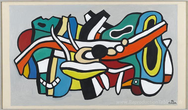Nous vous proposons une reproduction artisanale sur toile du célèbre tableau 'Projet pour une murale' de Fernand Leger, provenant du Musée de la Reproduction.