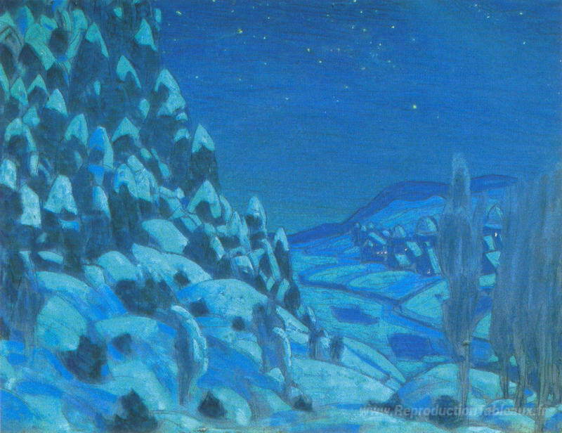 Nous vous proposons une reproduction artisanale sur toile du célèbre tableau 'Prologue. Forêt.' de Nicholas Roerich, provenant du Musée de la Reproduction.