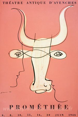 Nous vous proposons une reproduction artisanale sur toile du célèbre tableau 'Prométhée' de Jean Cocteau, provenant du Musée de la Reproduction.