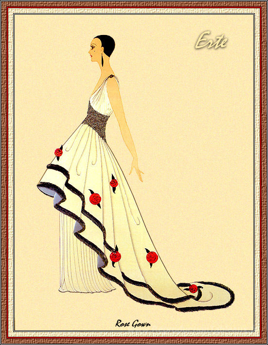 Nous vous proposons une reproduction artisanale sur toile du célèbre tableau 'Robe de rose' de Erte, provenant du Musée de la Reproduction.