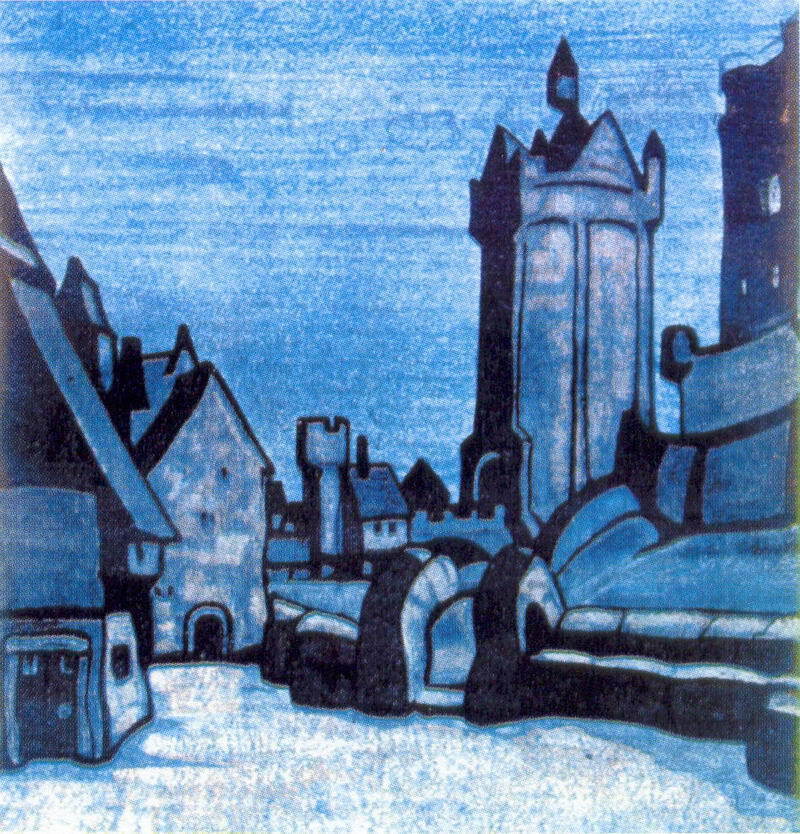Nous vous proposons une reproduction artisanale sur toile du célèbre tableau 'Rue en face du château' de Nicholas Roerich, provenant du Musée de la Reproduction.