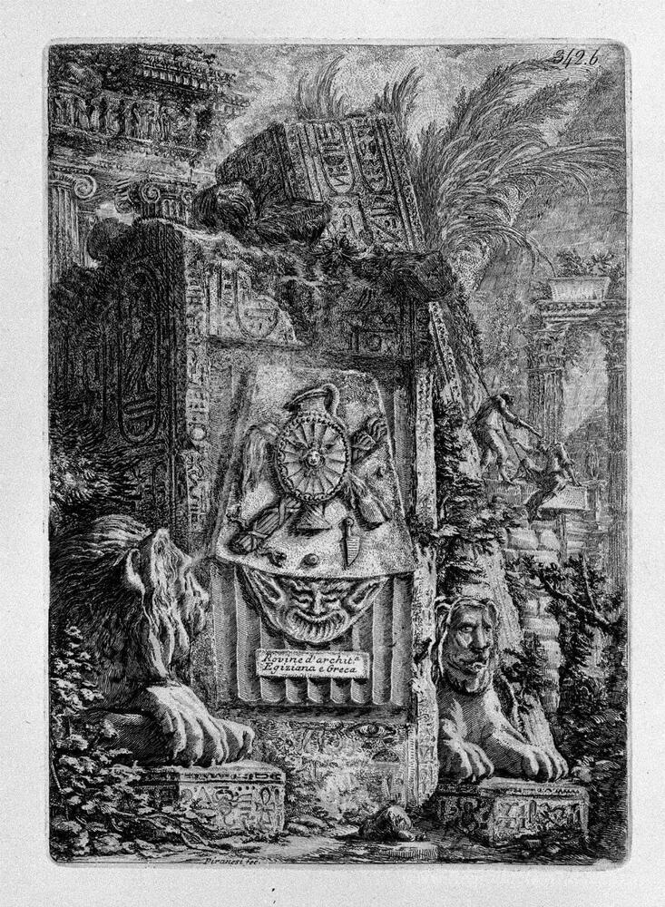 Nous vous proposons une reproduction artisanale sur toile du célèbre tableau 'Ruines de l'architecture égyptienne et grecque' de Giovanni Battista Piranesi, provenant du Musée de la Reproduction.