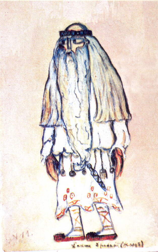 Nous vous proposons une reproduction artisanale sur toile du célèbre tableau 'Sacrificateur' de Nicholas Roerich, provenant du Musée de la Reproduction.
