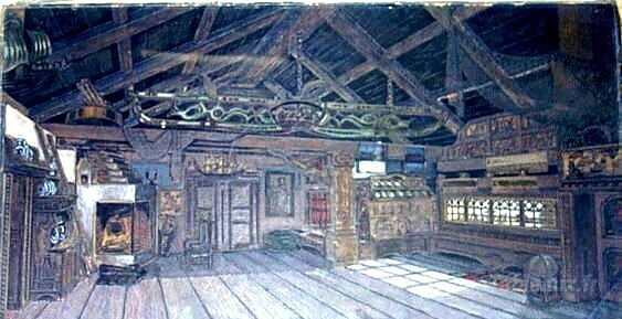 Nous vous proposons une reproduction artisanale sur toile du célèbre tableau 'Sadko. Conception de la décoration de la scène.' de Serge Sudeikin, provenant du Musée de la Reproduction.