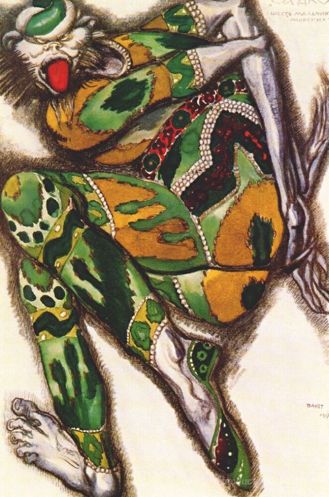 Nous vous proposons une reproduction artisanale sur toile du célèbre tableau 'Sadko le monstre vert' de Leon Bakst, provenant du Musée de la Reproduction.