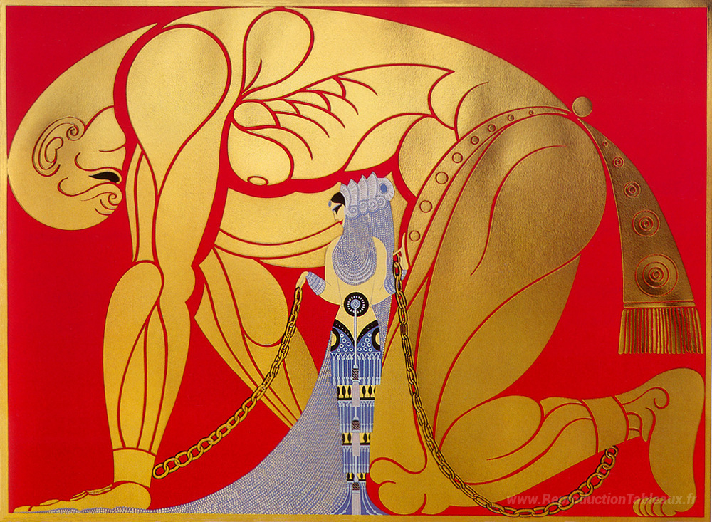 Nous vous proposons une reproduction artisanale sur toile du célèbre tableau 'Samson et Delilah' de Erte, provenant du Musée de la Reproduction.