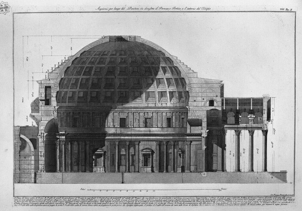 Nous vous proposons une reproduction artisanale sur toile du célèbre tableau 'Section le long du panthéon, qui montre les pronaos ou le portiq' de Giovanni Battista Piranesi, provenant du Musée de la Reproduction.