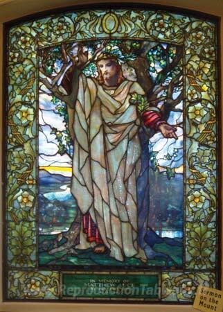 Nous vous proposons une reproduction artisanale sur toile du célèbre tableau 'Sermon sur le mont (fenêtre en verre taché dans l'église de la r' de Louis Comfort Tiffany, provenant du Musée de la Reproduction.