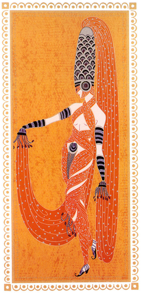 Nous vous proposons une reproduction artisanale sur toile du célèbre tableau 'Sheerazade 8' de Erte, provenant du Musée de la Reproduction.