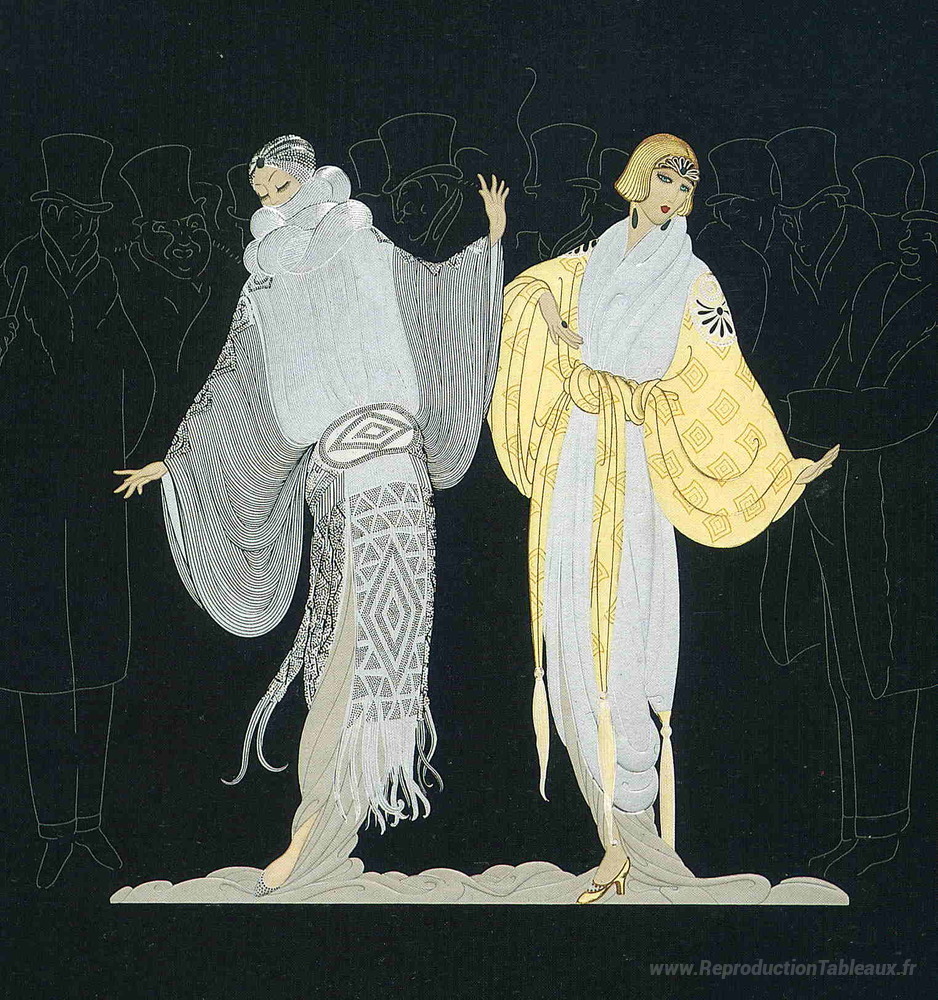 Nous vous proposons une reproduction artisanale sur toile du célèbre tableau 'Soirée d'ouverture' de Erte, provenant du Musée de la Reproduction.