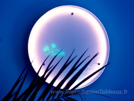 Nous vous proposons une reproduction artisanale sur toile du célèbre tableau 'Soleil et île' de Nanda Vigo, provenant du Musée de la Reproduction.