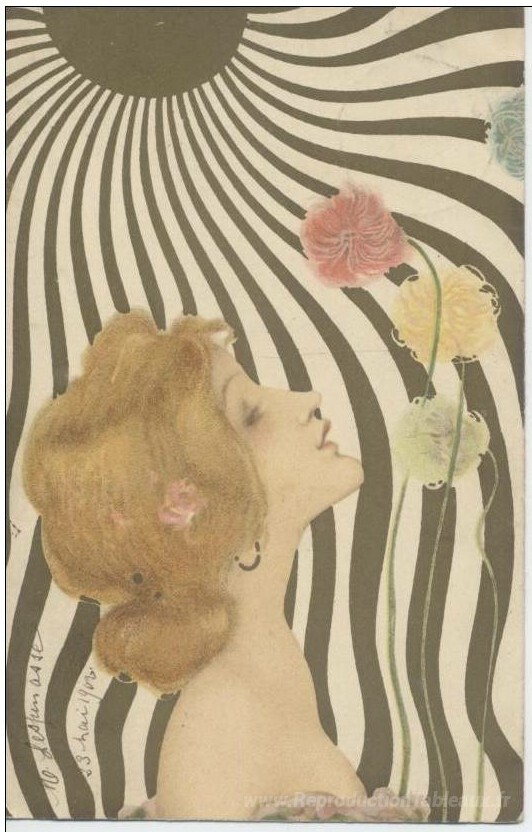 Nous vous proposons une reproduction artisanale sur toile du célèbre tableau 'Soleil' de Raphael Kirchner, provenant du Musée de la Reproduction.
