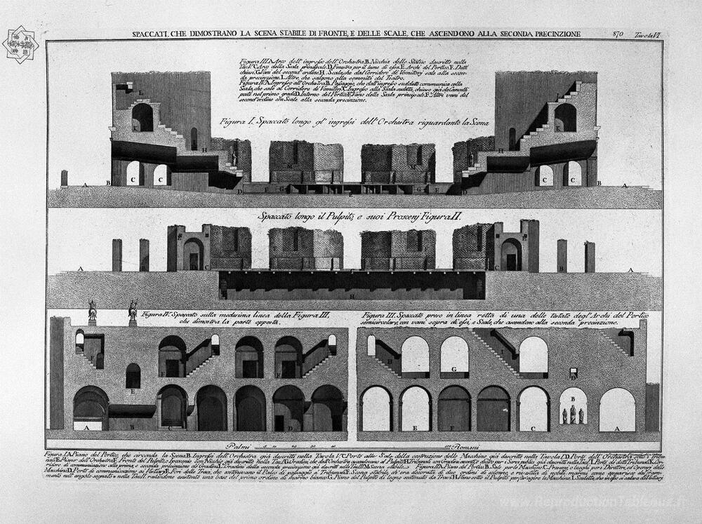 Nous vous proposons une reproduction artisanale sur toile du célèbre tableau 'Split, montrant la scène devant la construction et les escaliers' de Giovanni Battista Piranesi, provenant du Musée de la Reproduction.