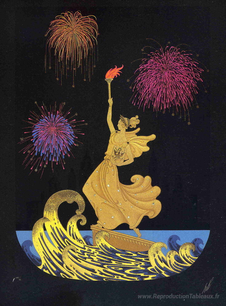 Nous vous proposons une reproduction artisanale sur toile du célèbre tableau 'Statue de la Liberté' de Erte, provenant du Musée de la Reproduction.