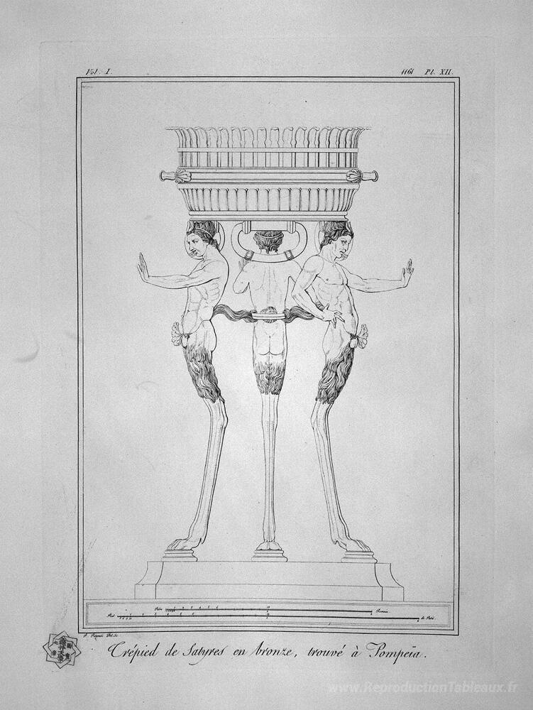 Nous vous proposons une reproduction artisanale sur toile du célèbre tableau 'Trépied avec satyrs, trouvé à Pompeii (inc. Dans OUSILLE)' de Giovanni Battista Piranesi, provenant du Musée de la Reproduction.