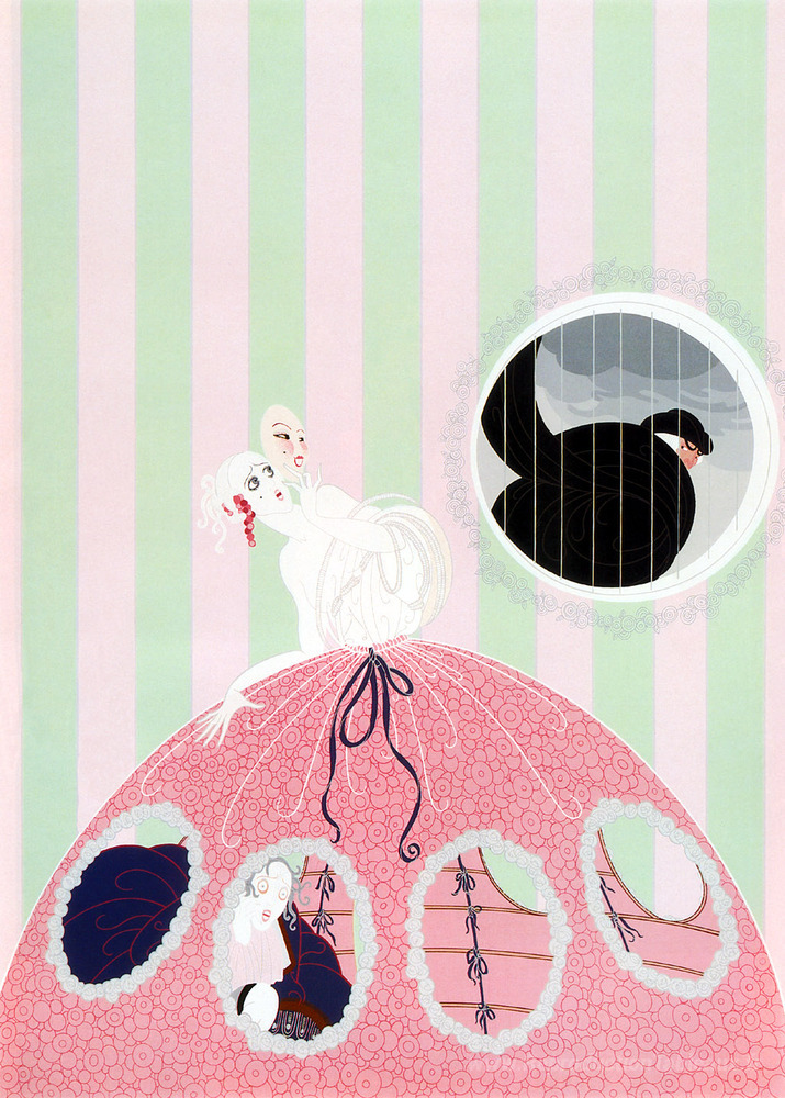 Nous vous proposons une reproduction artisanale sur toile du célèbre tableau 'Tromperie' de Erte, provenant du Musée de la Reproduction.