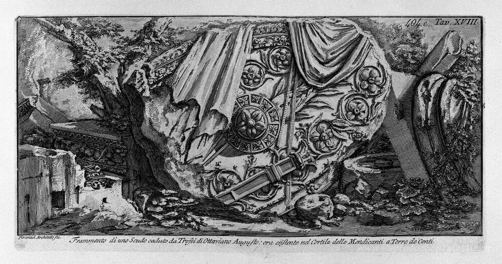 Nous vous proposons une reproduction artisanale sur toile du célèbre tableau 'Trophée d'Auguste existant sur la place du Capitole retiré des r' de Giovanni Battista Piranesi, provenant du Musée de la Reproduction.