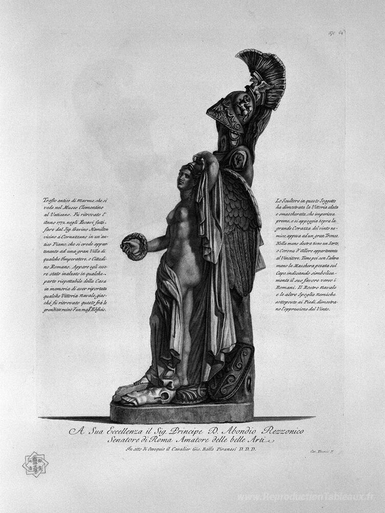 Nous vous proposons une reproduction artisanale sur toile du célèbre tableau 'Trophée de l'ancien marbre Clementino au musée du Vatican, qui a' de Giovanni Battista Piranesi, provenant du Musée de la Reproduction.
