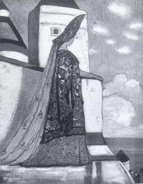 Nous vous proposons une reproduction artisanale sur toile du célèbre tableau 'Tsarine' de Nicholas Roerich, provenant du Musée de la Reproduction.