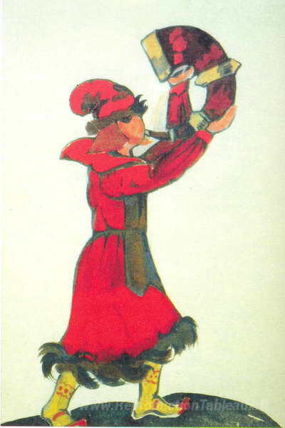 Nous vous proposons une reproduction artisanale sur toile du célèbre tableau 'Un gars avec le klaxon' de Nicholas Roerich, provenant du Musée de la Reproduction.