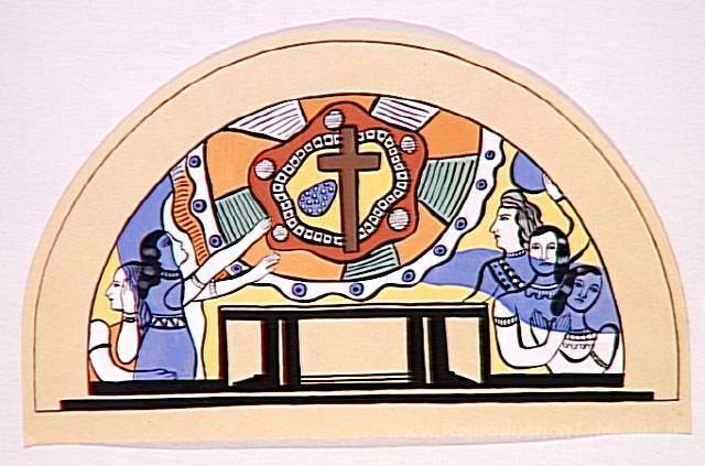 Nous vous proposons une reproduction artisanale sur toile du célèbre tableau 'Un modèle mosaïque pour la crypte du mémorial à High Mardasson' de Fernand Leger, provenant du Musée de la Reproduction.
