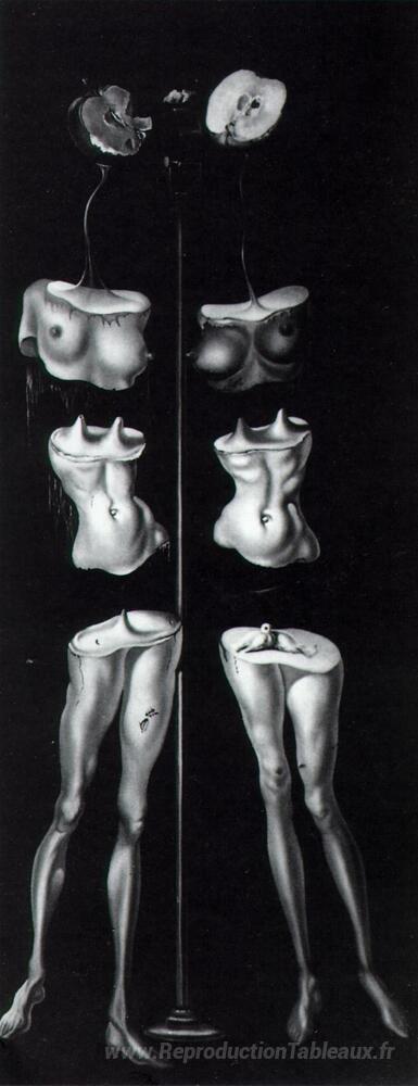 Nous vous proposons une reproduction artisanale sur toile du célèbre tableau 'Untitled - Set Design (figures coupées en trois)' de Salvador Dali, provenant du Musée de la Reproduction.
