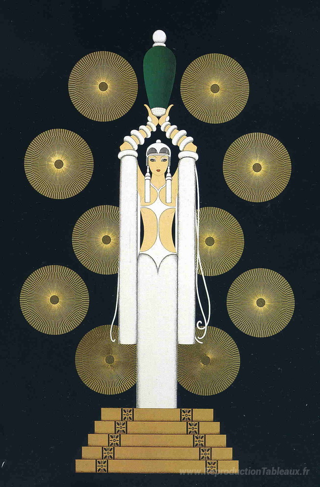Nous vous proposons une reproduction artisanale sur toile du célèbre tableau 'Vase émeraude' de Erte, provenant du Musée de la Reproduction.