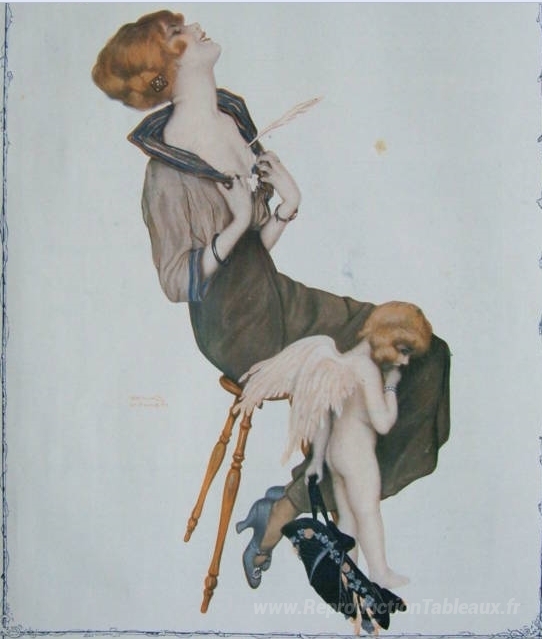Nous vous proposons une reproduction artisanale sur toile du célèbre tableau 'Vie parisienne' de Raphael Kirchner, provenant du Musée de la Reproduction.
