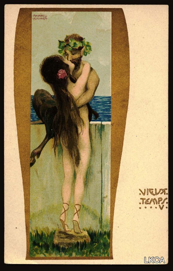 Nous vous proposons une reproduction artisanale sur toile du célèbre tableau 'Vieux temps' de Raphael Kirchner, provenant du Musée de la Reproduction.