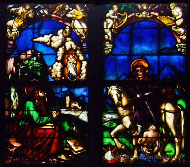 Nous vous proposons une reproduction artisanale sur toile du célèbre tableau 'Vitrail occidental dans la chapelle de la famille Loch' de Hans Baldung, provenant du Musée de la Reproduction.