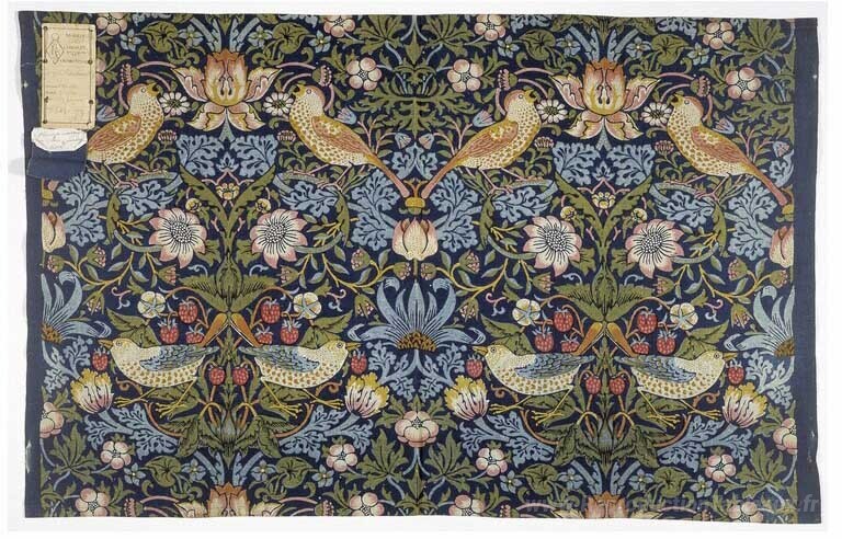 Nous vous proposons une reproduction artisanale sur toile du célèbre tableau 'Voleur de fraises, tissu d'ameublement' de William Morris, provenant du Musée de la Reproduction.