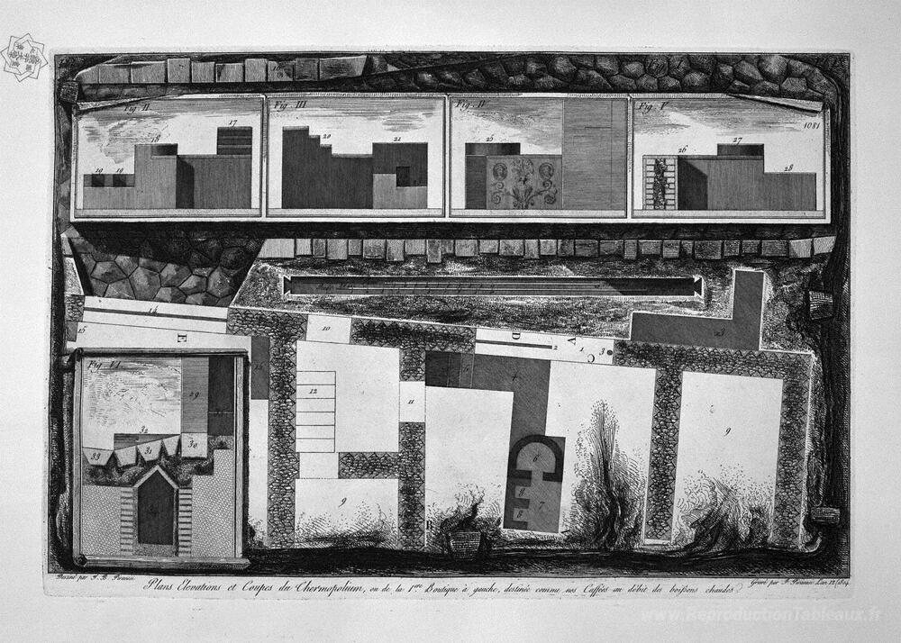 Nous vous proposons une reproduction artisanale sur toile du célèbre tableau 'Vue de l'entrée de la ville de Pompéi, avec des trottoirs et des' de Giovanni Battista Piranesi, provenant du Musée de la Reproduction.