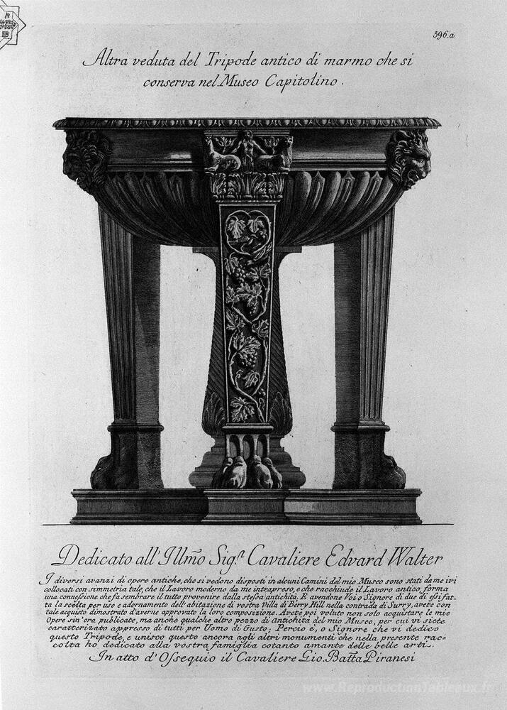 Nous vous proposons une reproduction artisanale sur toile du célèbre tableau 'Vue du trépied en marbre antique est conservé au musée de la cap' de Giovanni Battista Piranesi, provenant du Musée de la Reproduction.