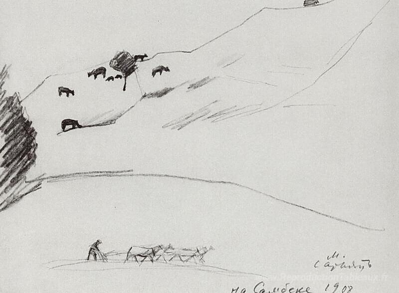 Nous vous proposons une reproduction artisanale sur toile du célèbre tableau 'À Sambek' de Martiros Saryan, provenant du Musée de la Reproduction.