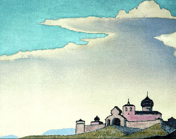 Nous vous proposons une reproduction artisanale sur toile du célèbre tableau 'Étude à "Wanderer of the Light City"' de Nicholas Roerich, provenant du Musée de la Reproduction.