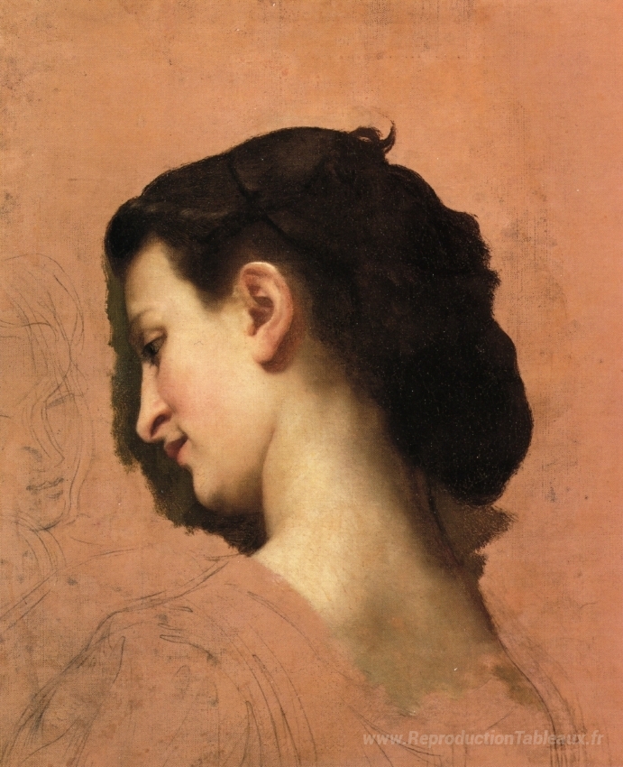 Nous vous proposons une reproduction artisanale sur toile du célèbre tableau 'Étude de la tête d'une jeune fille' de William-Adolphe Bouguereau, provenant du Musée de la Reproduction.