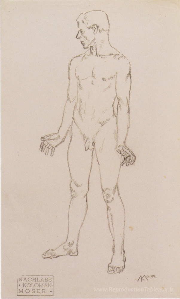 Nous vous proposons une reproduction artisanale sur toile du célèbre tableau 'Étude figure de Tristan' de Koloman Moser, provenant du Musée de la Reproduction.