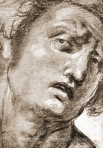 Nous vous proposons une reproduction artisanale sur toile du célèbre tableau 'Étude pour la tête' de Raphael, provenant du Musée de la Reproduction.