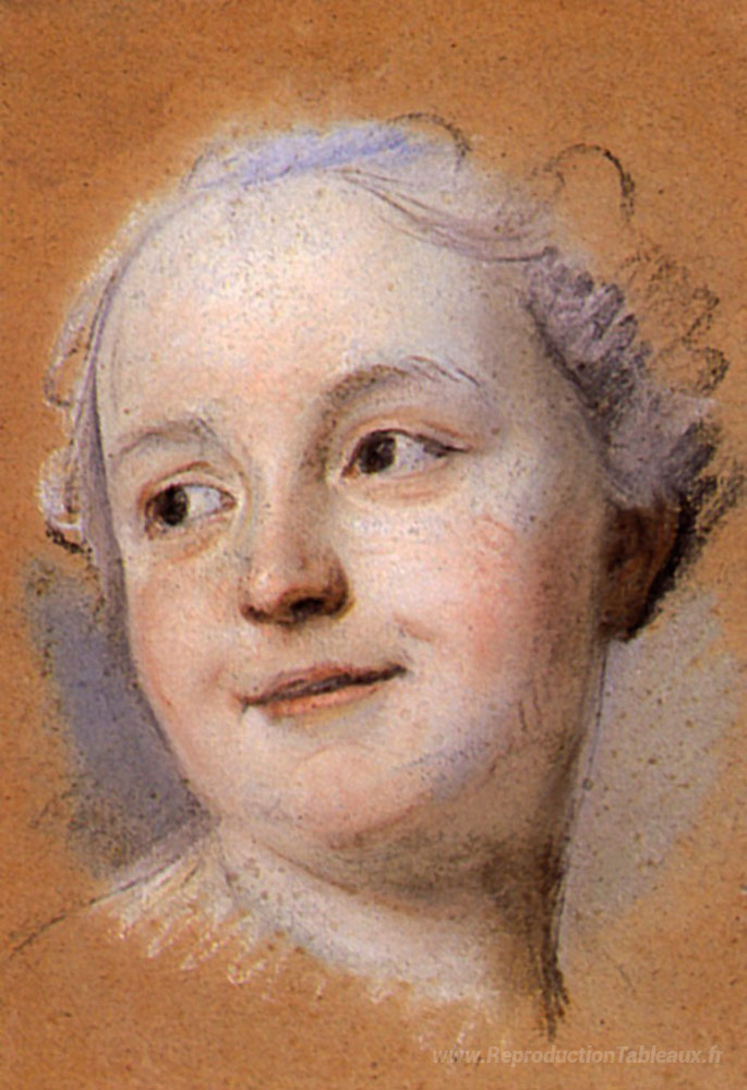 Nous vous proposons une reproduction artisanale sur toile du célèbre tableau 'Étude pour le portrait de femme inconnue' de Maurice Quentin de La Tour, provenant du Musée de la Reproduction.