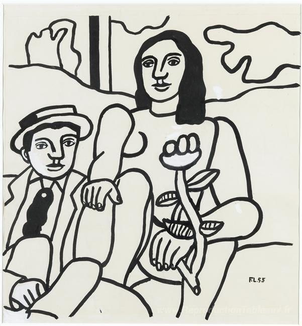 Nous vous proposons une reproduction artisanale sur toile du célèbre tableau 'Étude pour les deux amoureux' de Fernand Leger, provenant du Musée de la Reproduction.