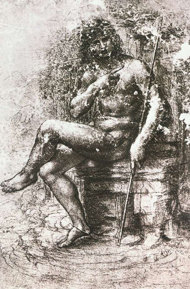 Nous vous proposons une reproduction artisanale sur toile du célèbre tableau 'Étude pour Saint-Jean dans le désert' de Leonardo da Vinci, provenant du Musée de la Reproduction.