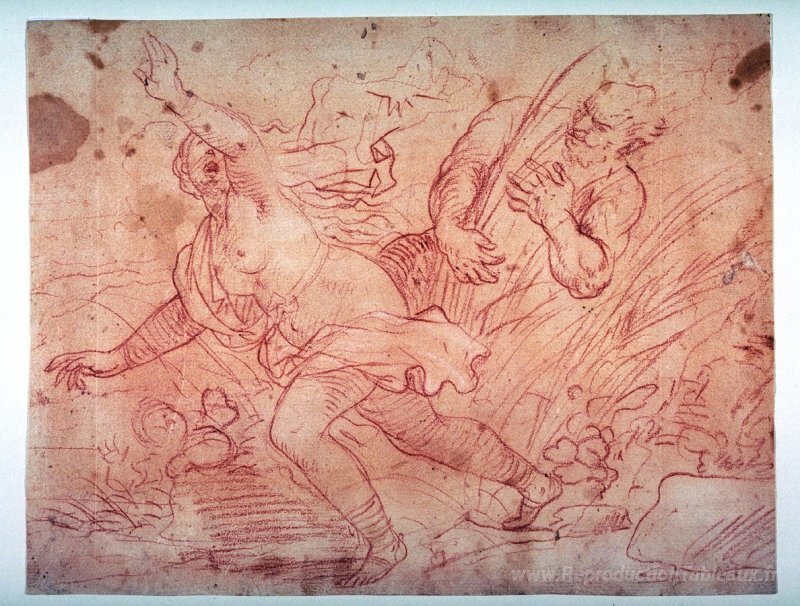 Nous vous proposons une reproduction artisanale sur toile du célèbre tableau 'Étude pour Syrinx' de Luca Giordano, provenant du Musée de la Reproduction.