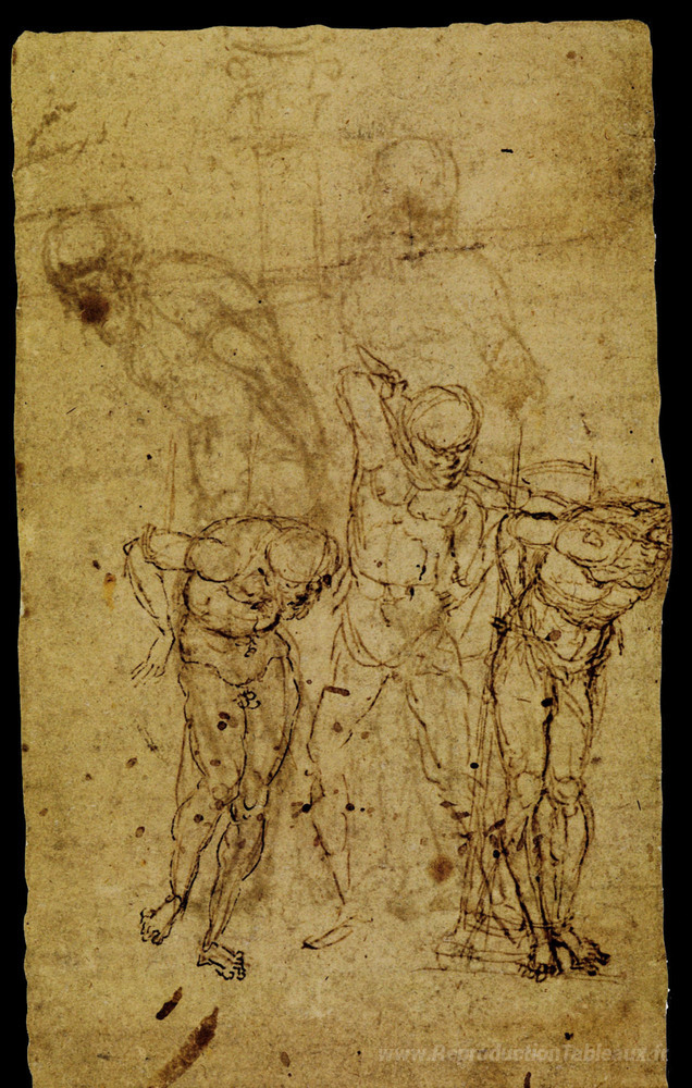Nous vous proposons une reproduction artisanale sur toile du célèbre tableau 'Étude pour une flagellation' de Andrea Mantegna, provenant du Musée de la Reproduction.